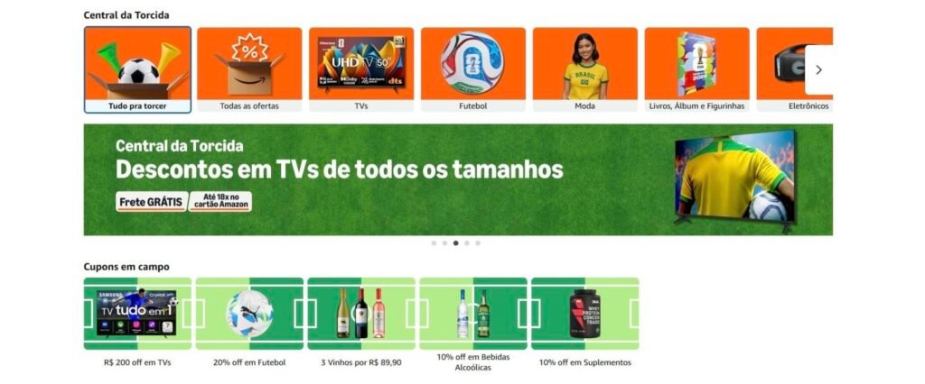 AMAZON ENTRA NO CLIMA DA COPA 2026 E LANÇA CENTRAL DA TORCIDA COM ATÉ 40% OFF EM DIVERSOS PRODUTOS